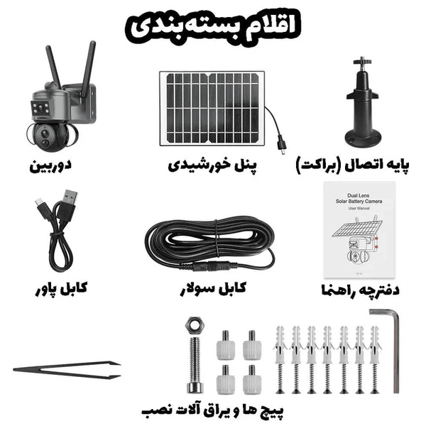 دوربین خورشیدی ST538 سیمکارتی: امنیت در هر شرایط، بدون نیاز به برق شهری! تصور کنید بدون هیچ دغدغهای، محیط اطراف خود را زیر نظر دارید؛ چه در روز، چه در شب، چه در شرایط آب و هوایی سخت. دوربین خورشیدی ST538 سیمکارتی دقیقاً برای شما طراحی شده است تا امنیت شما را به سطحی بینظیر برساند! ویژگیهای کلیدی: منبع تغذیه خورشیدی – همیشه آنلاین، همیشه روشن با دو پنل خورشیدی قوی و باتری داخلی 20000 میلیآمپری، دیگر نگران قطع برق یا مصرف بالای انرژی نخواهید بود. این دوربین با استفاده از انرژی خورشید، 24/7 روشن است و نیازی به هیچگونه سیمکشی ندارد. وضوح تصویر 6 مگاپیکسلی 2K – همه چیز در جزئیات با لنز دوگانه 6 مگاپیکسلی و کیفیت تصویر 1440×2560، کوچکترین جزئیات را از دست نخواهید داد. چه در روز و چه در شب، همه چیز با وضوحی بینظیر نمایش داده میشود. حتی در تاریکی مطلق، دید مادون قرمز 50 متری و وارم لایت رنگی به شما دید کامل میدهد. دید 360 درجه – هیچ نقطهای مخفی نمیماند این دوربین با زاویه دید 360 درجه افقی و 90 درجه عمودی، به شما امکان میدهد تمام زوایا را پوشش دهید. با قابلیت چرخش افقی و عمودی، میتوانید تمامی نقاط محیط خود را کنترل کنید، بدون این که نیاز به چند دوربین داشته باشید. مقاوم در برابر شرایط آب و هوایی – مقاوم و ضدآب (IP66) بدنه پلاستیکی مرغوب و گواهی ضدآب IP66 به شما این اطمینان را میدهد که حتی در شرایط سخت مانند باران و گرد و غبار، دوربین شما به عملکرد خود ادامه خواهد داد. تعقیب سوژه و کشف حرکت – همیشه در جریان باشید به لطف تکنولوژی تعقیب سوژه و کشف حرکت، این دوربین هرگونه حرکت مشکوک را شناسایی کرده و به سرعت آن را دنبال میکند. شما میتوانید از طریق اپلیکیشن Ubox تمامی هشدارها را دریافت کنید. نصب آسان و بدون دردسر این دوربین بدون نیاز به سیمکشیهای پیچیده و برق شهری نصب میشود. کافیست آن را در محل مناسب قرار دهید و از امکانات فوقالعاده آن لذت ببرید.